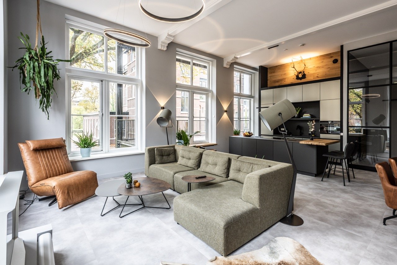 De door ons voorgestelde ingrepen zijn zoveel mogelijk beperkt gebleven. In de zin dat de belangrijke kenmerken van het pand behouden zijn zonder in te boeten op de leefkwaliteit. Het pand is volledig geïsoleerd, geschikt gemaakt als woongebouw en weer klaar voor de toekomst met zorg voor beeldbepalende details. Zo is de nieuwe entree gemaakt op de plek waar voorheen aan de gevel aangetast is en zijn de bestaande, later toegevoegde, dakkapellen gemoderniseerd. De nieuwe royale balkons staan volledig op zichzelf en zijn reversibel zonder een spoor achter te laten. Via de bestaande ramen kunnen de balkons worden betreden; de vloer van het balkon ligt dus hoger dan de vloer van de leefruimte binnen. De woning op de bovenste etage krijgt middels een loggia een buitenruimte en veel daglicht binnen.